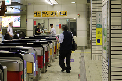 ④「北4番出口」の表示が見えたら左方向へ曲がってください。